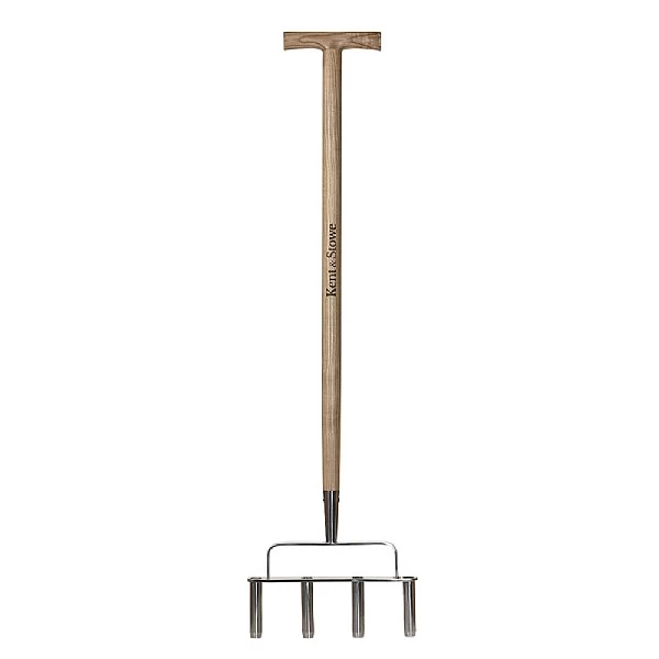 - The Kent & Stowe Stainless Steel 4 Prong Lawn Aerator is the ideal lawn care tool for reducing soil compaction in a lawn and improving the movement of oxygen, water and nutrients to the grass roots